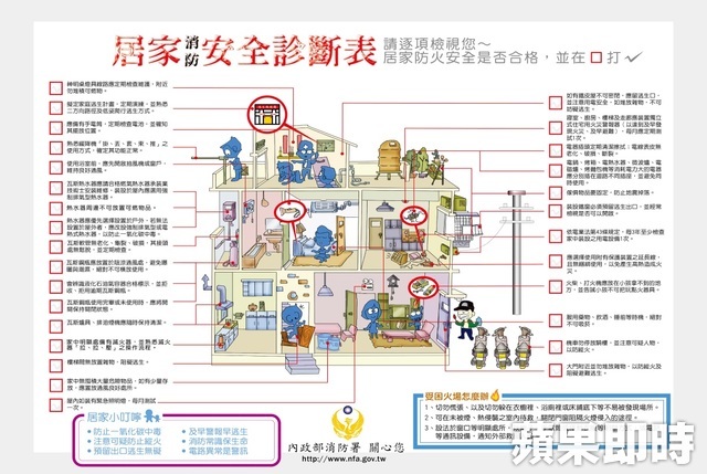 內政部強調,排除危險因子過好年:民眾可參考內政部所製作的「居家消防安全診斷表」檢查並排除家中易致災害的危險因子,平安團圓過好年。(政治中心/台北報導)