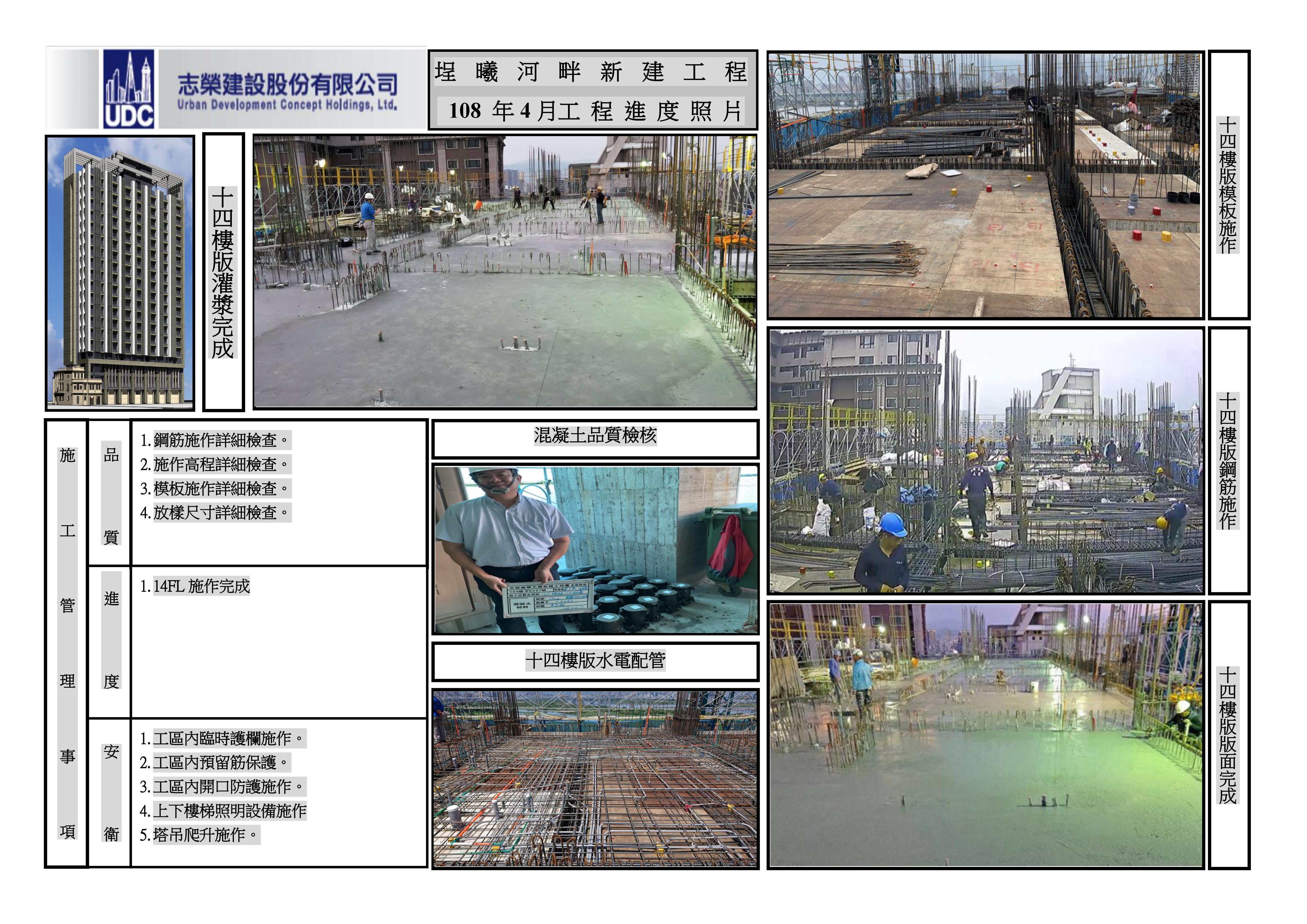 川悅(原埕曦河畔)新建工程108年03月工程進度照-十四樓版灌漿完成