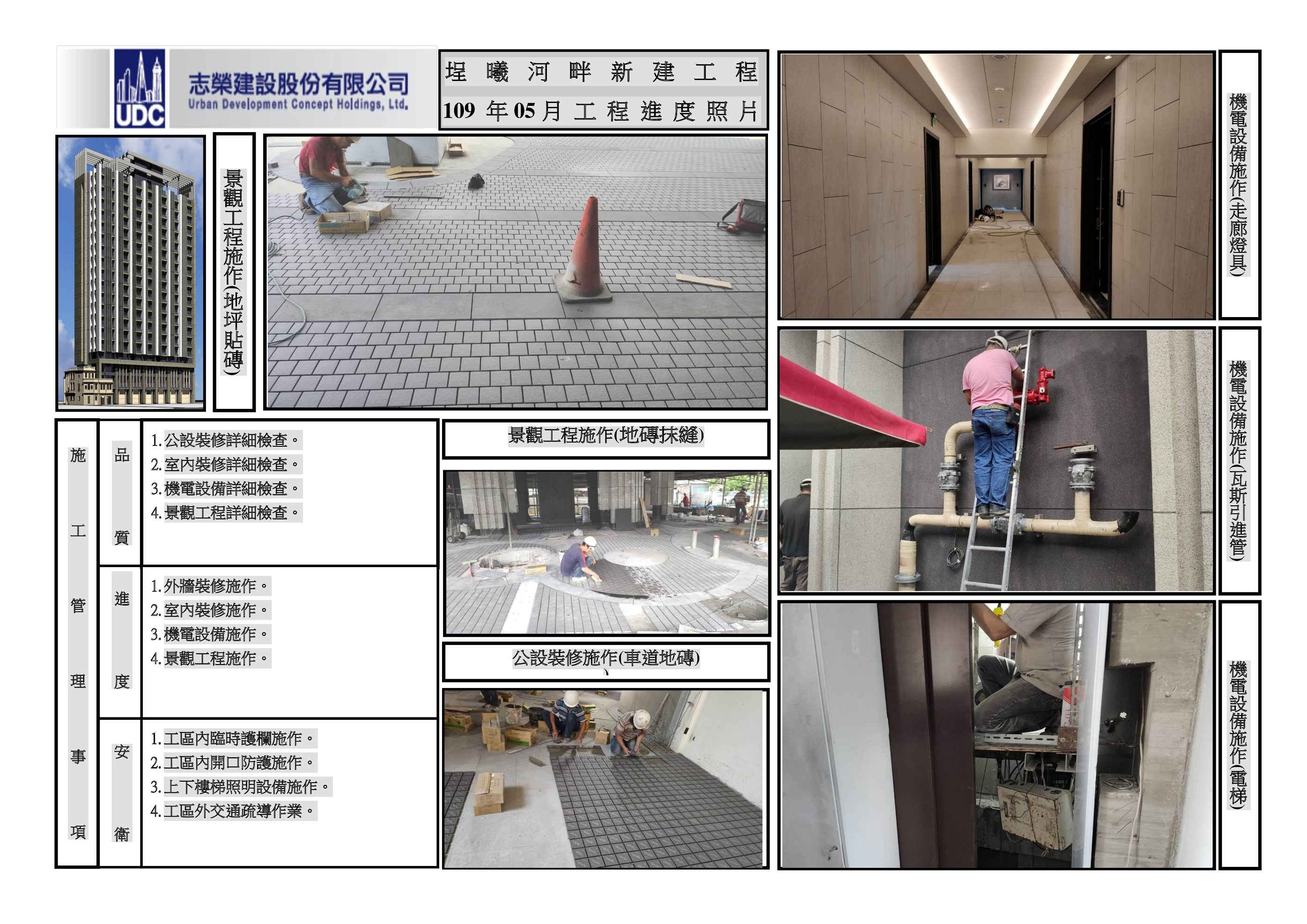 川悅(原埕曦河畔)新建工程109年05月工程進度照-景觀工程施作(地坪貼磚)